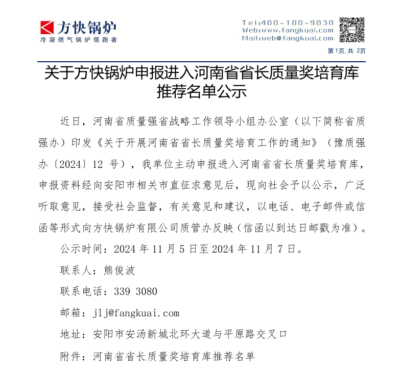 近日,河南省(shěng)質量強省戰略工作領導小(xiǎo)組辦公室(以下簡稱省質強辦)印發(fā)《關於開展河南省省長質量獎(jiǎng)培育工作的通知(zhī)》(豫質強辦〔2024〕12 號)...